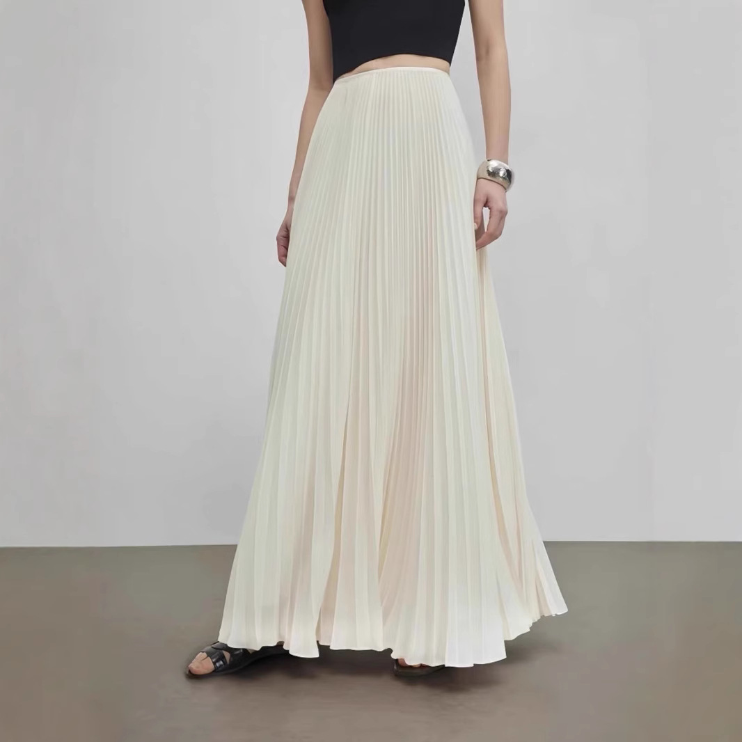 Rok Setengah Badan Lipit Warna Putih Sifon Ringan dan Tipis Rok Benang Lipit Kelas Atas Model Panjang Elegan Musim Semi 2025
