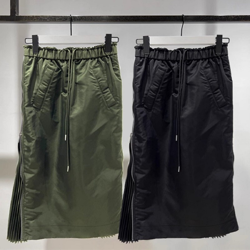 FOG sacaai rok lipit, rok lipit pinggang berlipat ritsleting dua sisi tali pelangsing baru 2024
