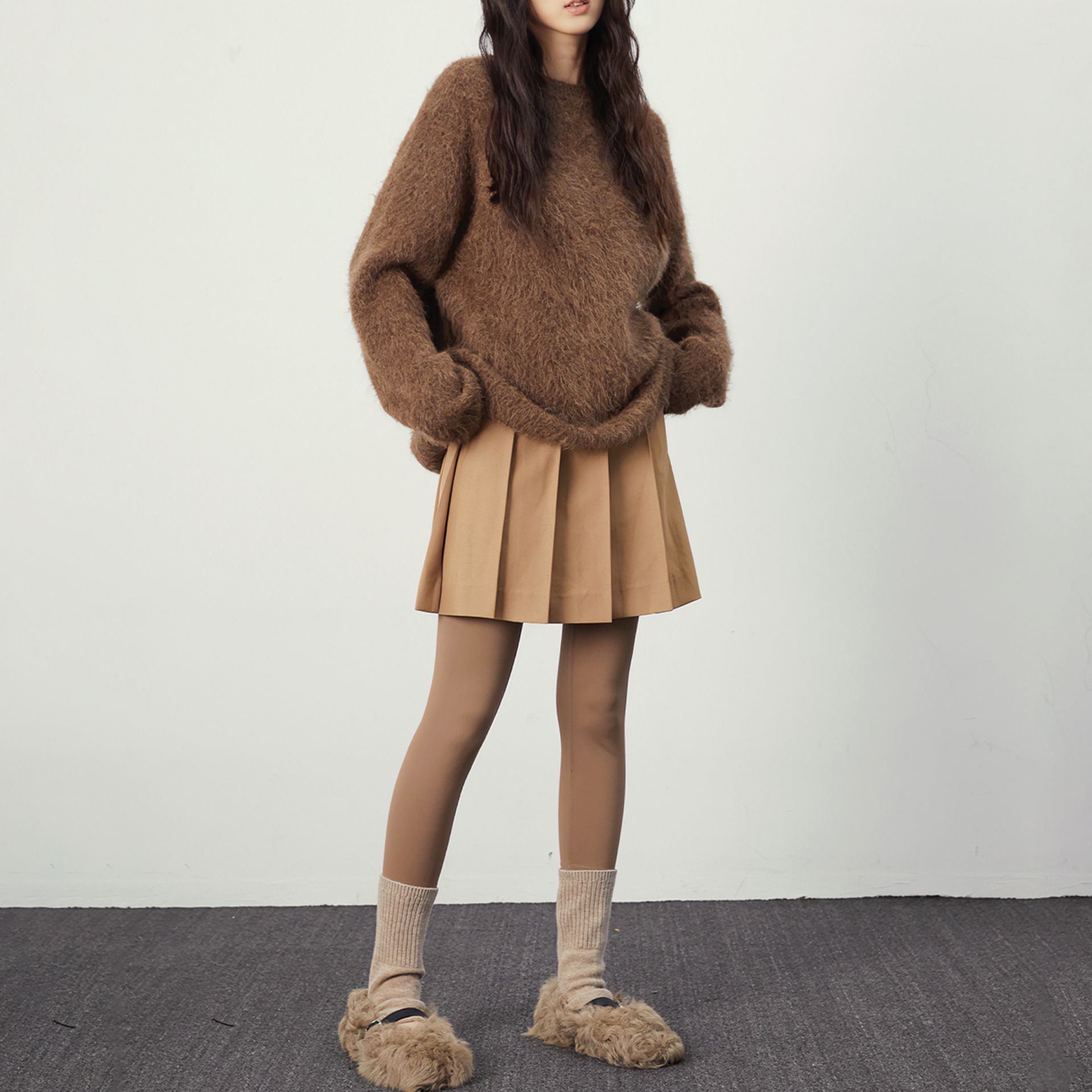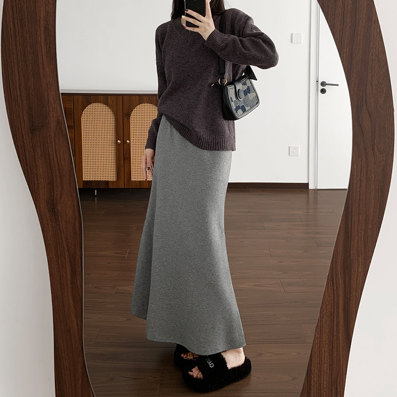 Rok Setengah Badan Rajut Pinggir Daun Teratai 2024 Rok Lipit Terlihat Langsing Musim Gugur dan Musim Dingin Rok Payung Besar Rok A-Line Model Panjang Sedang Mengurangi Usia