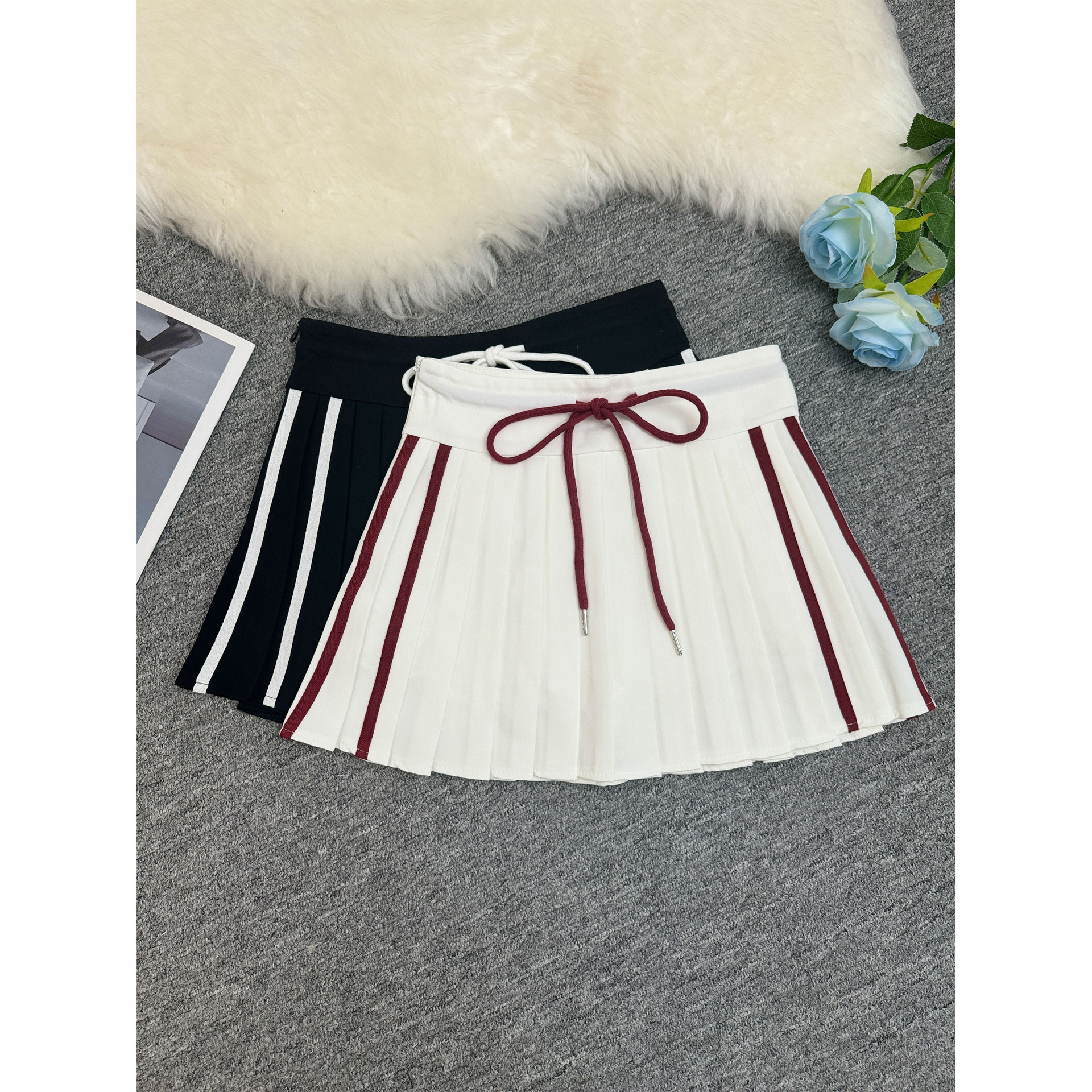 Rok Lipit Tali Serut Warna Kontras Pengurangan Usia Gaya Korea Model Baru Rok Setengah Badan Celana Pendek Anti Terang Rok Model Pendek Wanita