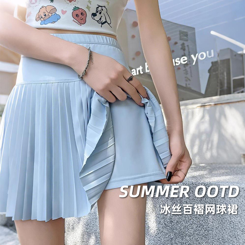 Anti Terang Bulu Tangkis Tenis Rok Pendek Olahraga Pinggang Tinggi Lipit Santai Lari Luar Ruangan Celana Rok Yoga Kebugaran Musim Panas