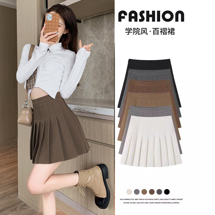 Rok lipit kopi abu-abu wanita, rok pinggang tinggi anti-keriput pelangsing anti-keriput musim semi, musim gugur dan musim dingin 2024 rok super populer baru musim panas jk