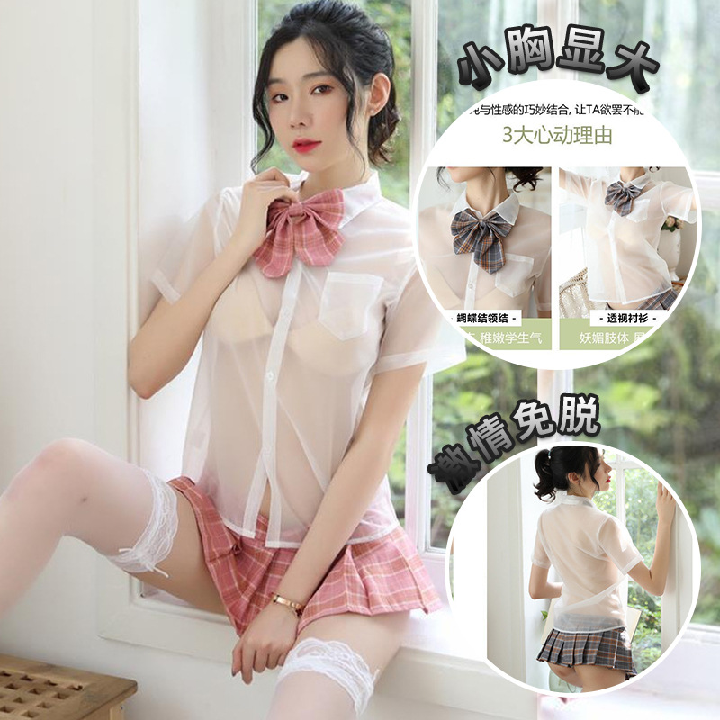 Lingerie seksi kemeja putih rok berlipat dasi kupu-kupu kotak-kotak Inggris seragam sekolah jk pelajar 6903 peran