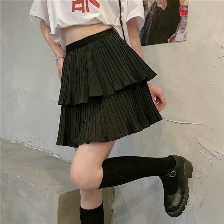 Model real shot rok pendek kue sifon, rok pendek lapisan anti paparan 2024 musim panas gaya Korea baru rok lipit berlapis