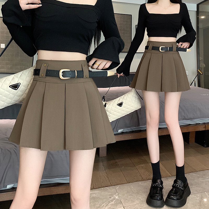 Rok lipit wanita model a-line musim panas, rok lipit celana a-line pelajar pinggang tinggi ukuran plus, Rok setengah baru musim semi 2021