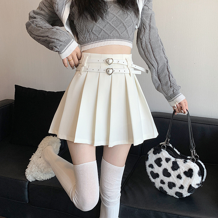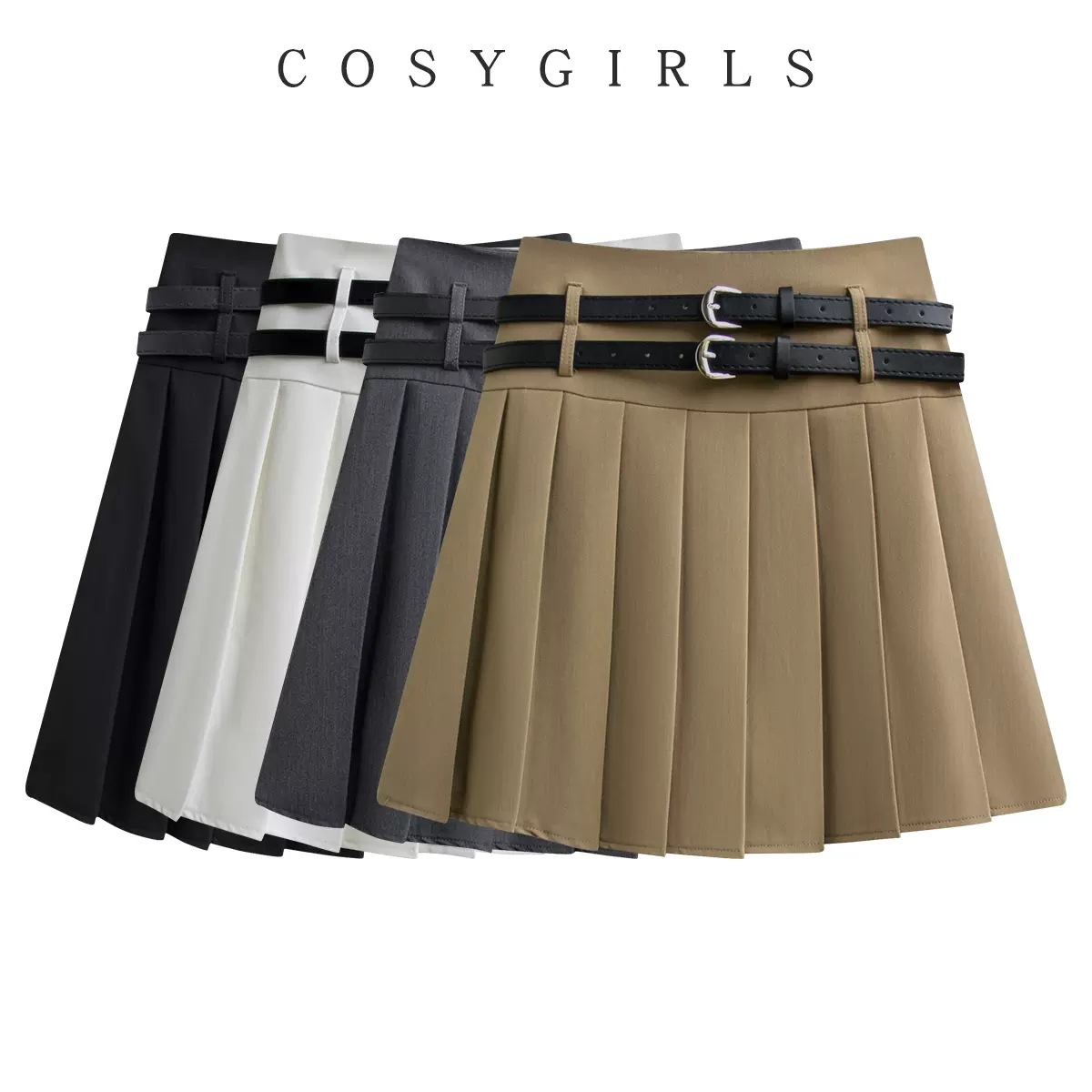 Rok lipit setelan baru wanita musim semi dan musim panas 2024 rok pendek pelangsing pinggang tinggi rasa desain sabuk ganda cinta