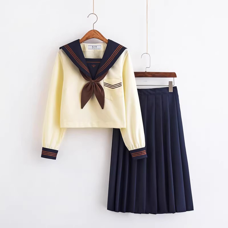 Grosir setelan seragam tea Yuzhong Guan Xi kardigan pakaian Tengah jk rok seragam asli tiga potong pakaian pelaut set lengkap pakaian kelas lengan panjang