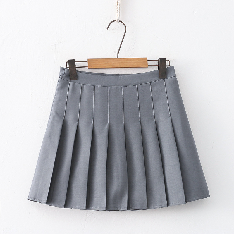 Rok Setengah Badan Abu-abu Kaki Panjang Besar Rok JK Orang Kecil Pinggang Tinggi Musim Semi Rok Pendek Lipit Gaya Sekolahan