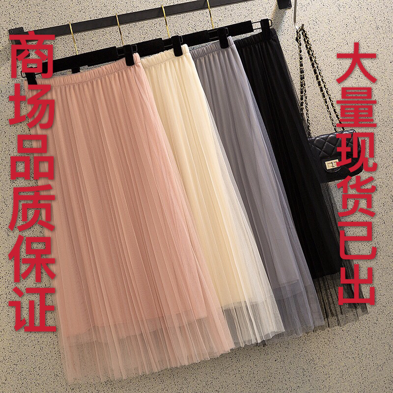 Rok peri elegan manis musim gugur dan musim dingin rok jala pinggang tinggi rok siswa panjang setengah lutut rok a-line seratus