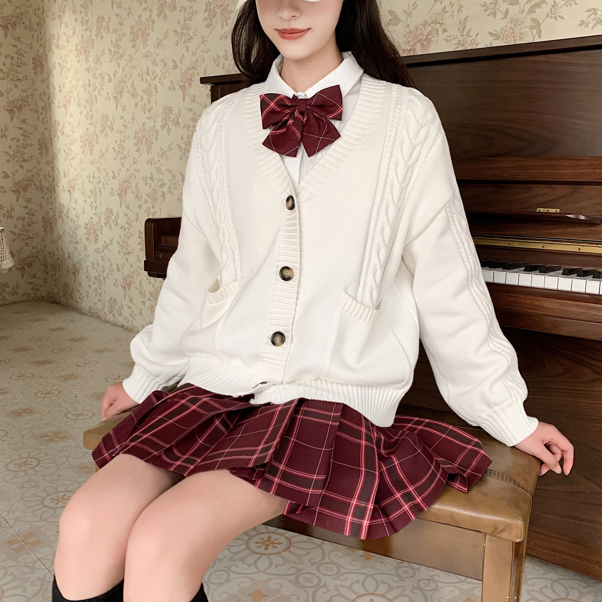 Rok kotak-kotak wanita, kardigan rajut segar gaya Jepang, rok kotak-kotak orthahua JK