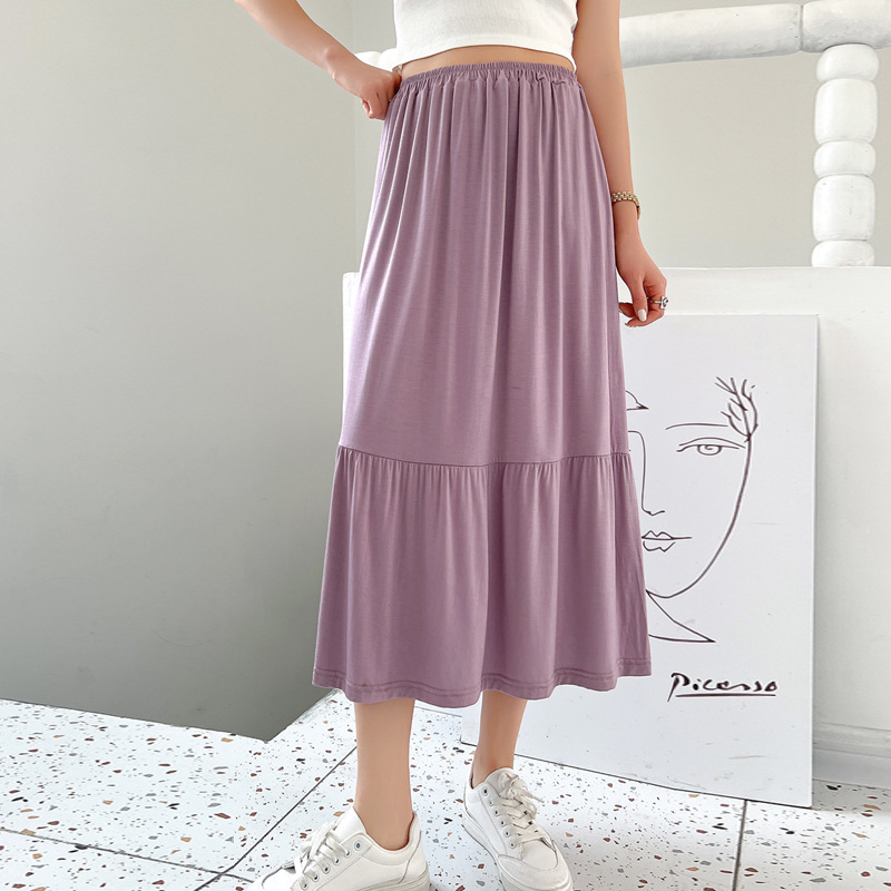 Rok Modal musim panas gaya Barat rok swing besar tipis serbaguna a-line rok panjang ungu warna polos elegan setengah rok