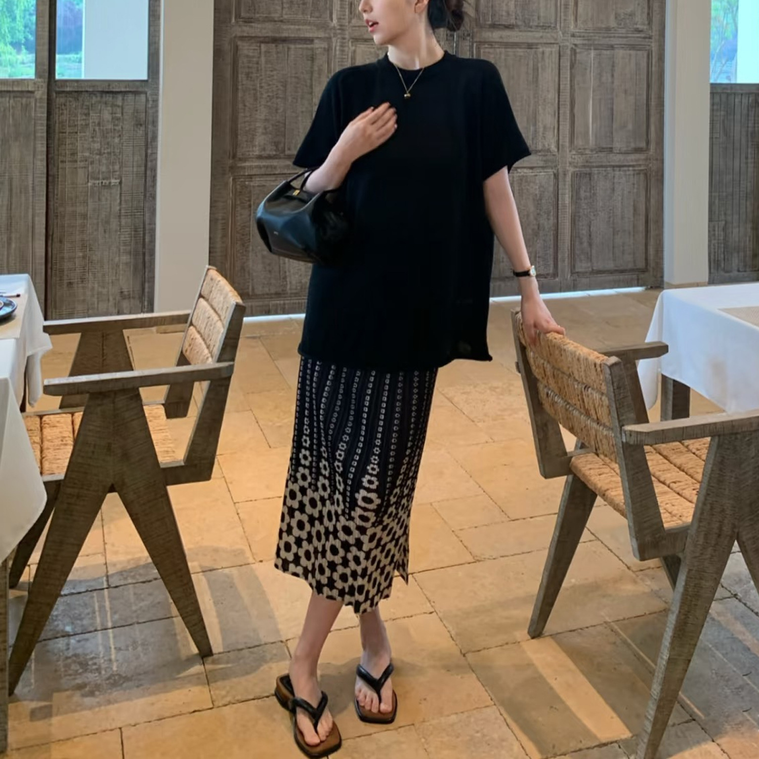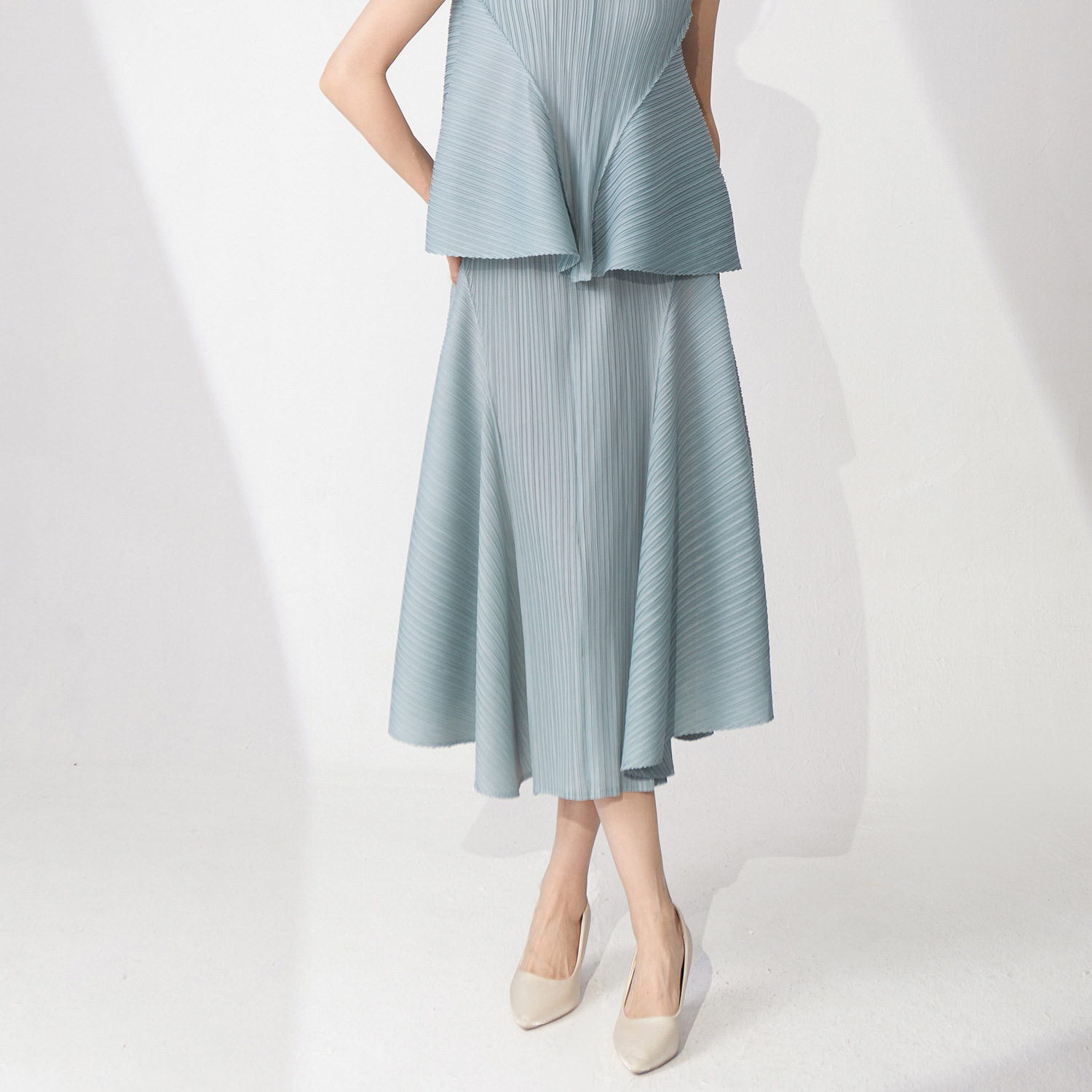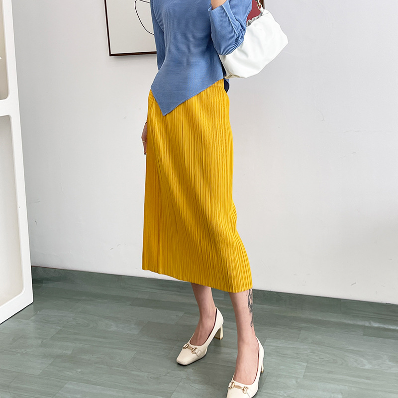 Miyake Counter Penjualan Panas Rok Pinggul Menutupi Perut Model Dasar Menutupi Perut Terlihat Langsing Rok Setengah Badan Lurus Trendi