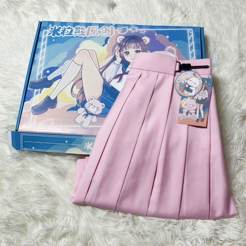 Rok Pendek Dasar Seragam JK Asli Boneka Beruang Beras Rok Lipit Rok A-Line Perguruan Tinggi Rok Sedan