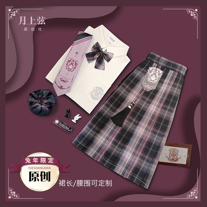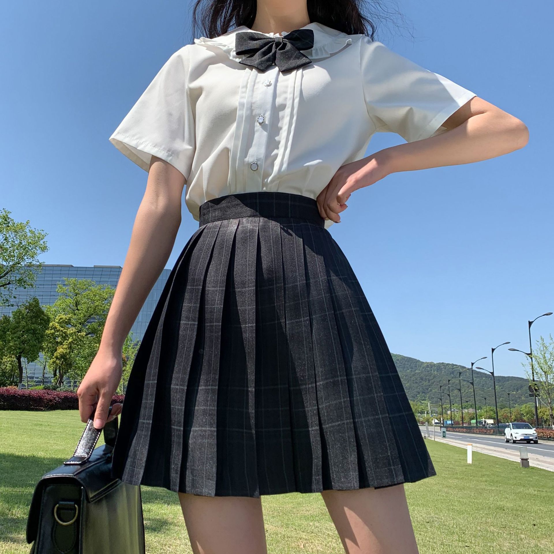 Rok seragam karbon abu-abu jk asli Jepang, rok gaya kuliah setelan musim panas asli rok kotak-kotak setengah panjang set penuh untuk wanita