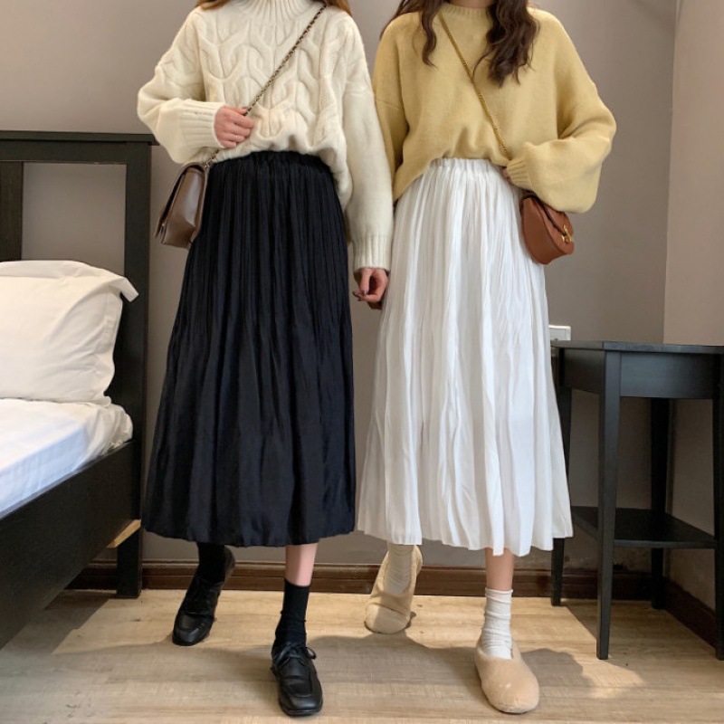 Rok lipit gaya Korea untuk wanita, Rok jaring panjang setengah, Rok lipit benang ayun besar, Rok Wanita cocok semua gaya Korea musim semi dan musim gugur