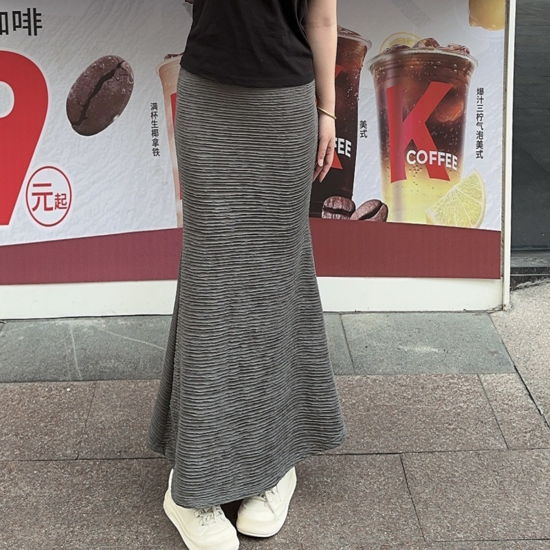 Rok Setengah Badan Wanita Rok Ekor Ikan Menutupi Pinggul Siswa Musim Panas Rok Panjang Menutupi Pinggang Elastis Terlihat Langsing di Belakang Pinggang Elastis Model Baru