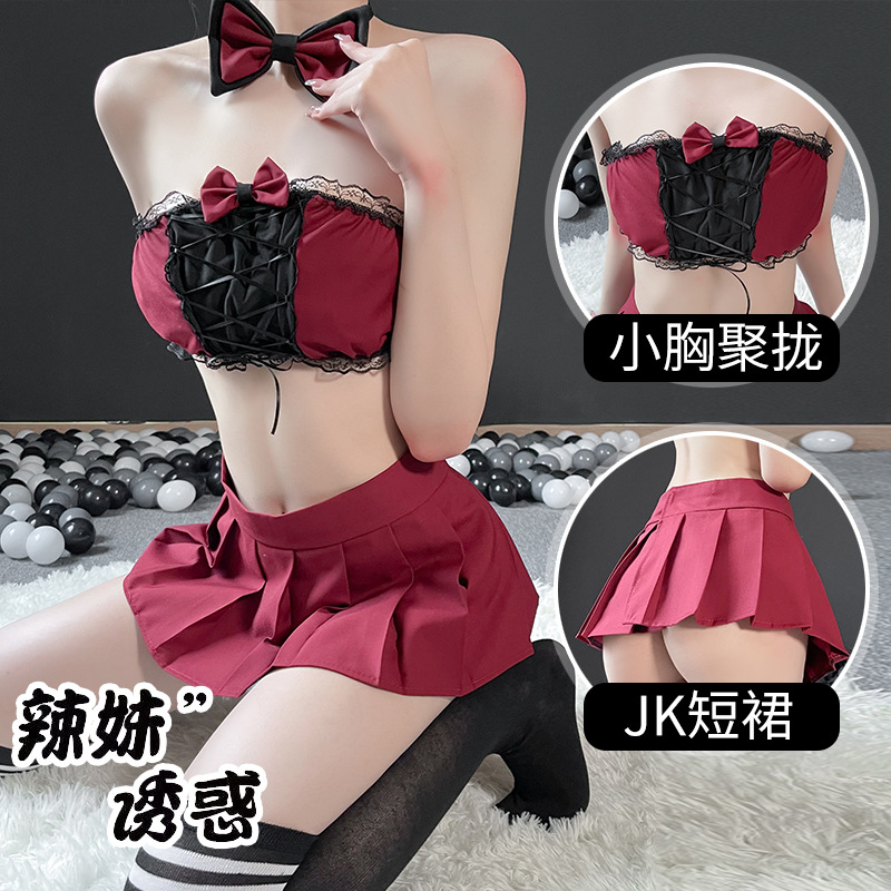 Pakaian dalam seksi lipit rok pendek JK, setelan seragam bermain peran pita manis pakaian siswa perempuan
