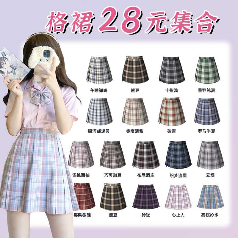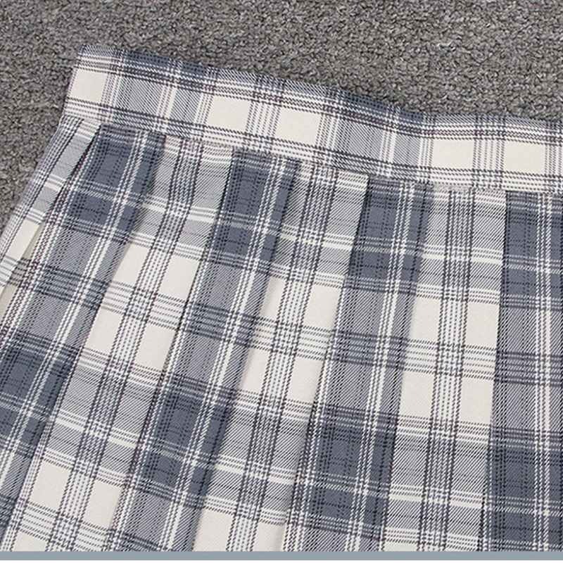 JK rok seragam Jepang kuliah tinggi pinggang kotak-kotak, Rok lipit kotak-kotak (Dewa & debu)