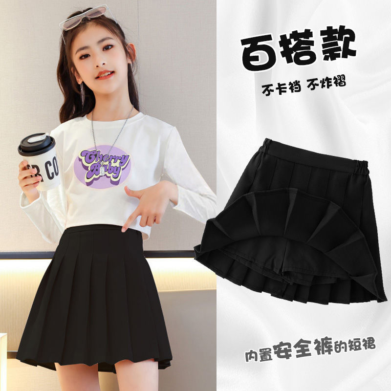 Rok Lipit Hitam Rok Setengah Badan Anak Perempuan Besar 2024 Model Baru Rok Pendek Anak-anak JK Gaya Kampus