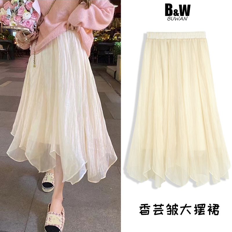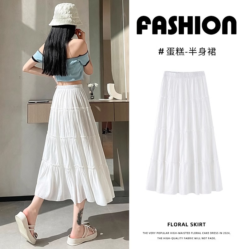 Rok Setengah Badan Lipit Warna Putih Rok Panjang Air Rebus Pinggang Tinggi Model Baru 2025 Musim Panas Wanita Rok Model Kue Gaya Balet