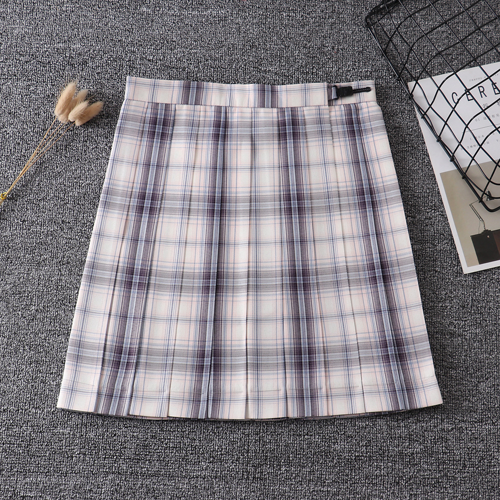 Rok lipit kotak-kotak putih, Rok lipit model Jepang, rok kotak-kotak gaya Barat, Rok lipit kotak-kotak