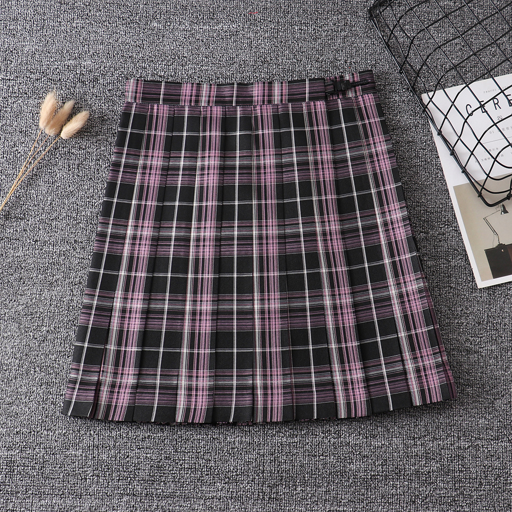 Rok lipit Jepang untuk siswa, Rok lipit Jepang kotak-kotak pinggang tinggi, rok lipit hitam merah muda & kotak-kotak, rok seragam sekolah