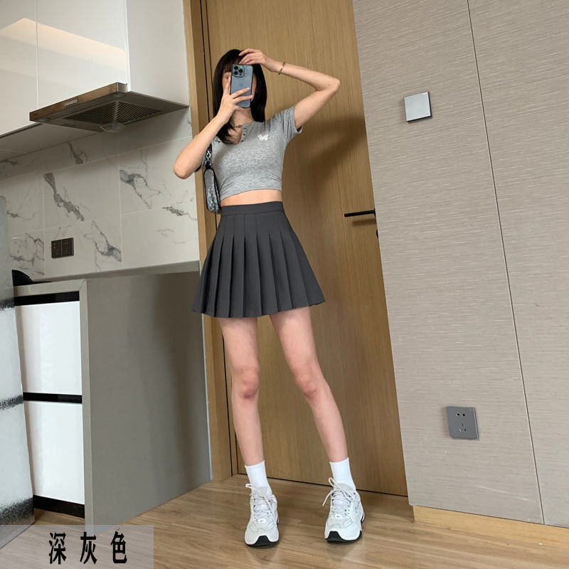 Rok lipit abu-abu untuk wanita, rok mini seragam jk kecil, rok pelangsing a-line pinggang tinggi musim semi dan musim gugur musim panas