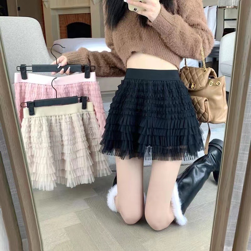 Rok kue jala desain baru 2024 untuk wanita rok a-line kelas tinggi pelangsing pinggang tinggi manis musim semi dan musim gugur
