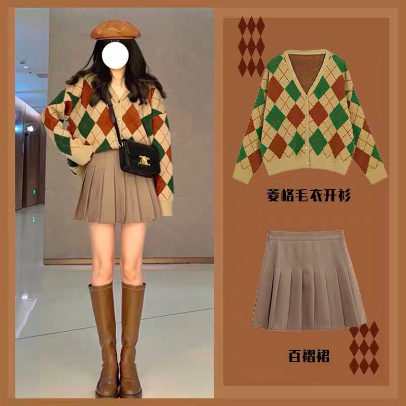 825 rok lipit ramping pinggang tinggi khaki kualitas baik rok berlipat wanita musim gugur dan musim dingin a-line gaya preppy jk rok serbaguna