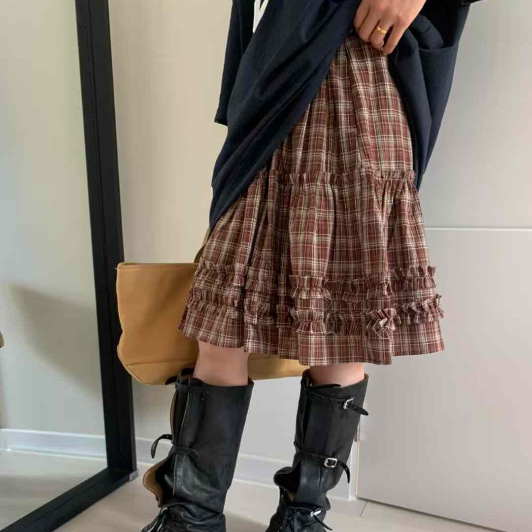 JK rok seragam pelajar sangat baik, Rok lipit Jepang kotak-kotak panjang, rok seragam pinus kotak-kotak