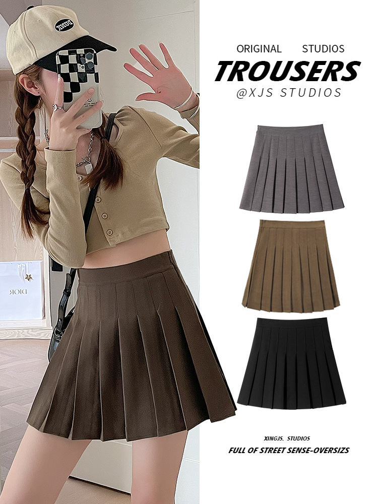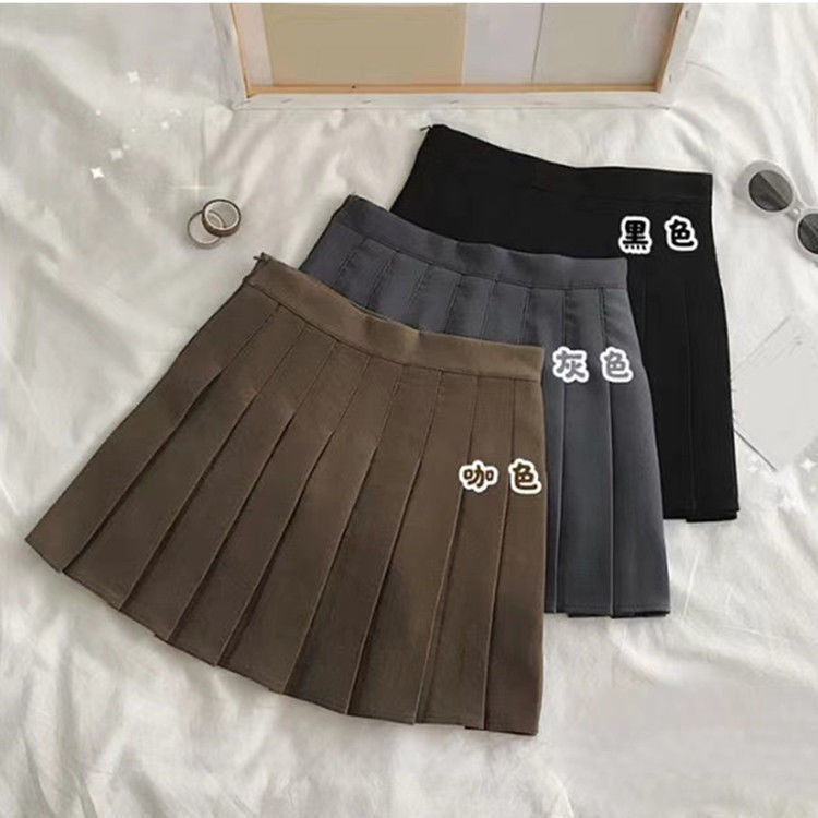 825 rok khaki kualitas bagus wanita musim semi dan musim gugur rok berlipat pinggang tinggi rok a-line kecil jk rok pendek