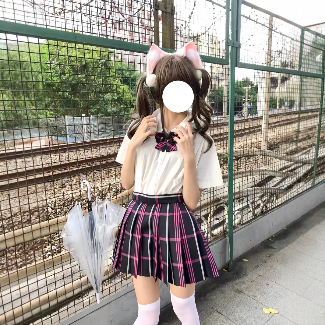 Rok Setengah Badan JK Asli Asli [Wangi Persik Putih] Seragam Produk Jadi Asli Tempat Model Baru Gaya Kampus Kawat Merah Musim Gugur Musim Dingin Empat Musim