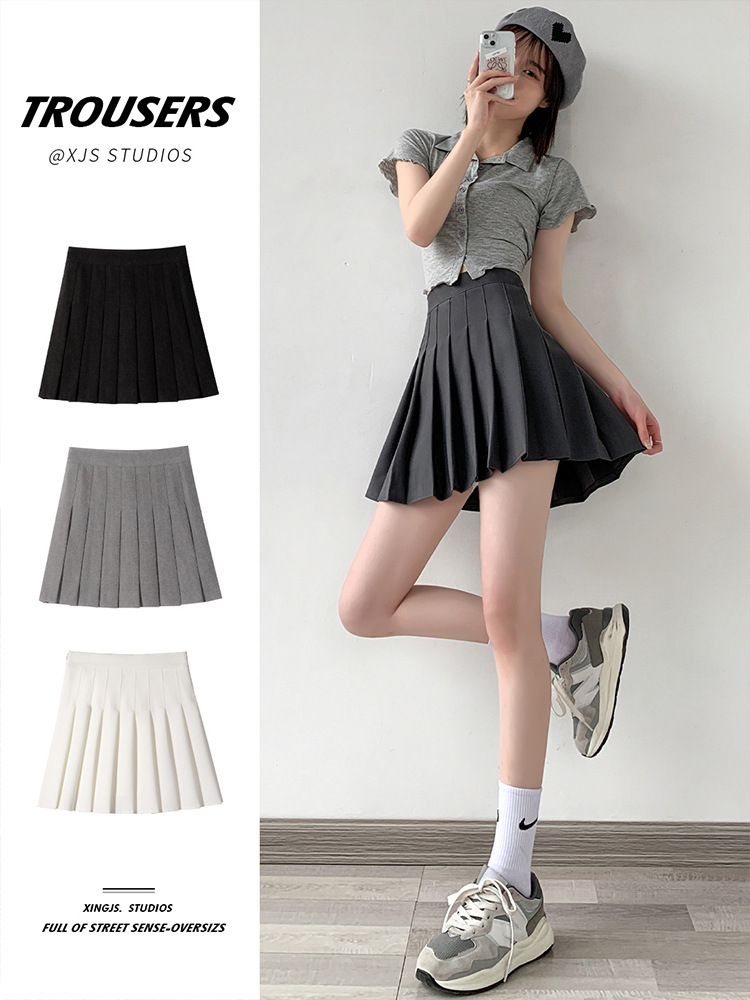 Rok lipit abu-abu wanita pinggang tinggi tipis musim panas rok jk gaya kuliah setelan tb pelangsing rok a-line