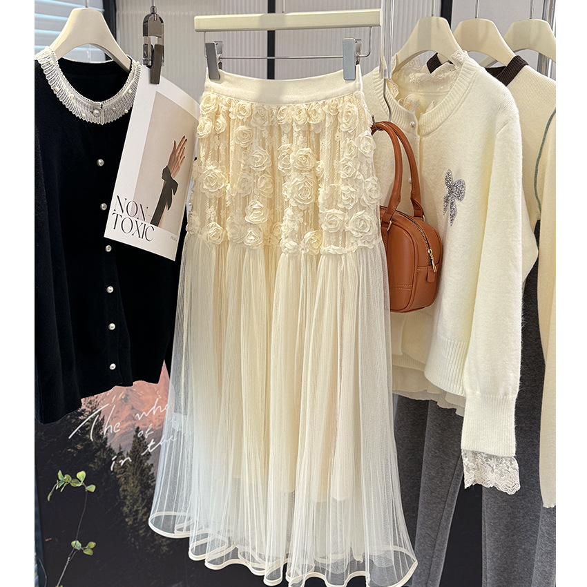 Rok Setengah Badan Rok Wanita Model Setengah Panjang Model Baru Musim Semi 2025 Rok Panjang Manis Renda Pinggiran Bunga Rok 2426