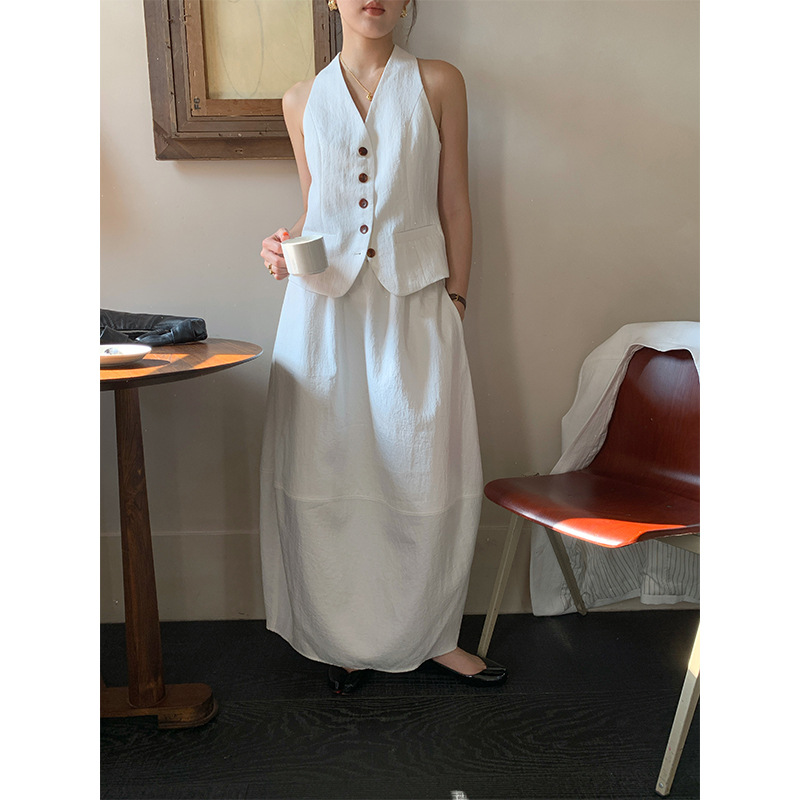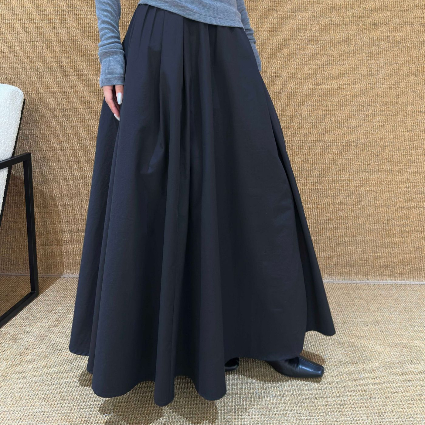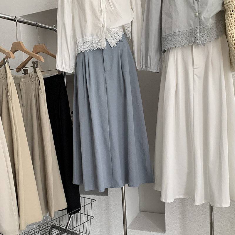 Rok Setengah Badan A-line Lipit Pinggang Tinggi Warna Polos Retro Rok Panjang Gaya Jepang Seni Musim Semi 2025 Rok Besar Dengan Ikat Pinggang