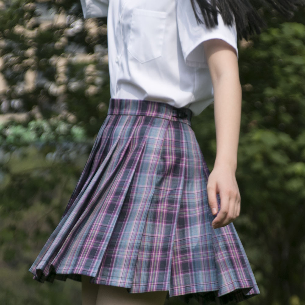Hew pohon kotak-kotak dasar JK seragam gaya kuliah Jepang rok berlipat a-line wanita musim panas baru