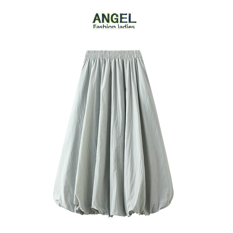 欧玛莱 半松紧高腰纯色中长款A字半身裙休闲百搭遮胯伞裙批发4343
