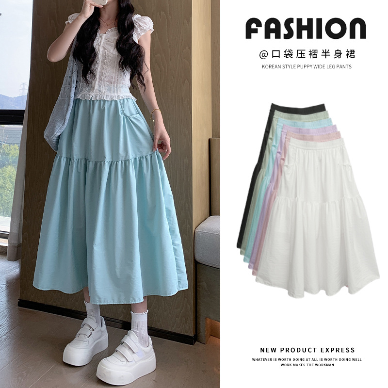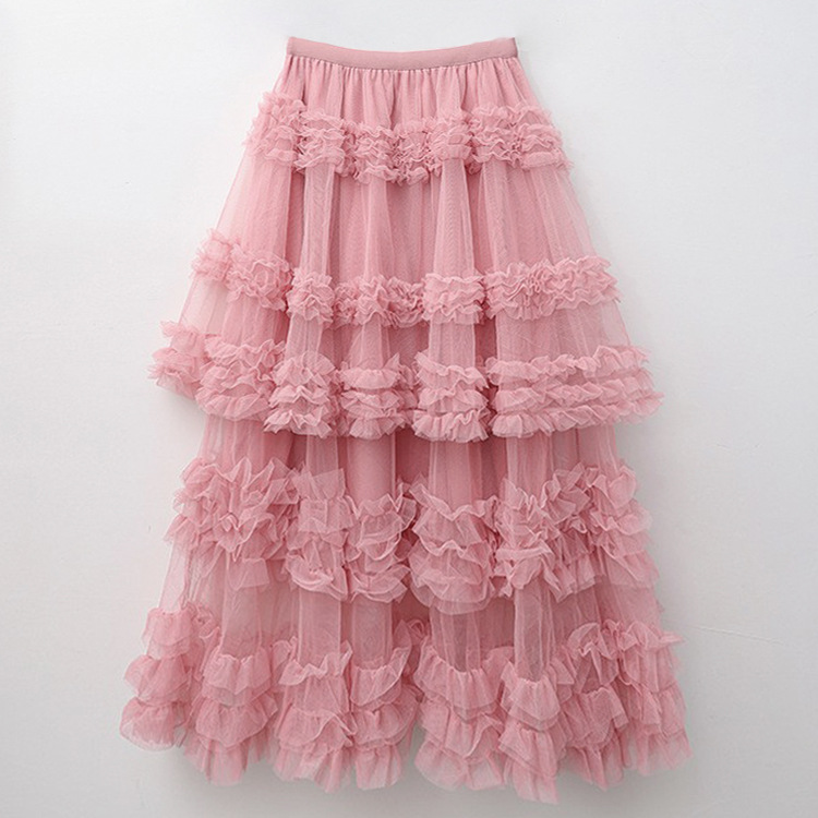 Rok Panjang Besar Industri Berat Model Baru Rok Kue Bertingkat Banyak Rok Tuffin Pinggang Tinggi Mudah Dipadu Padan Warna Solid Bertingkat A-Line Bertingkat Lintas Batas