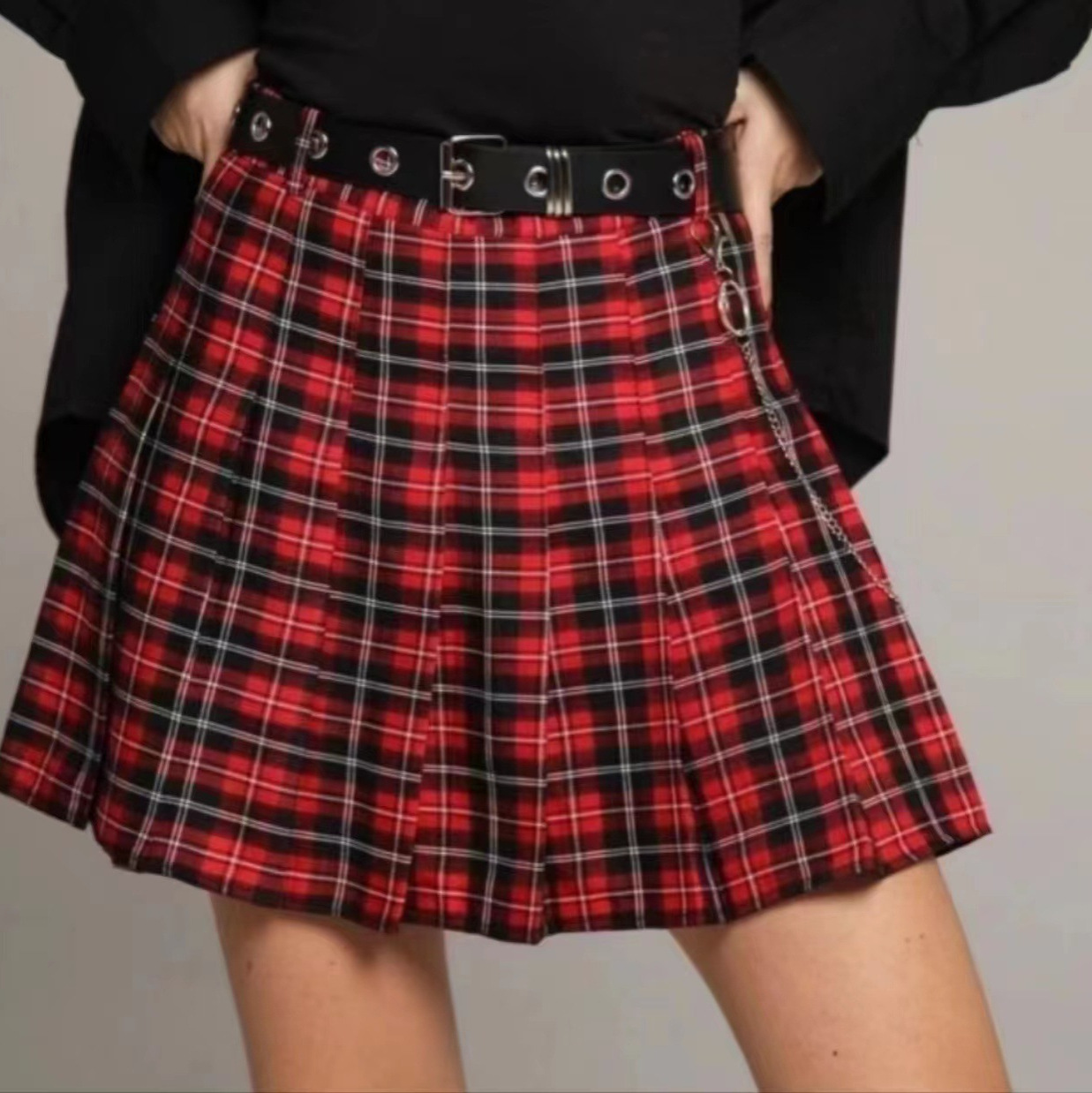 Rok jk baru musim panas dan musim gugur 2024 Real shot langsung dari pabrik rok Amerika rok lipit wanita rok gaya preppy rok kotak-kotak merah