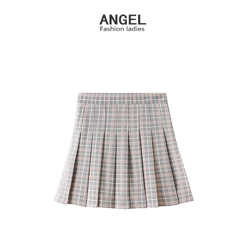 Rok Setengah Badan Abu-abu Kaki Panjang Besar Rok JK Orang Kecil Pinggang Tinggi Musim Semi Rok Pendek Lipit Gaya Sekolahan