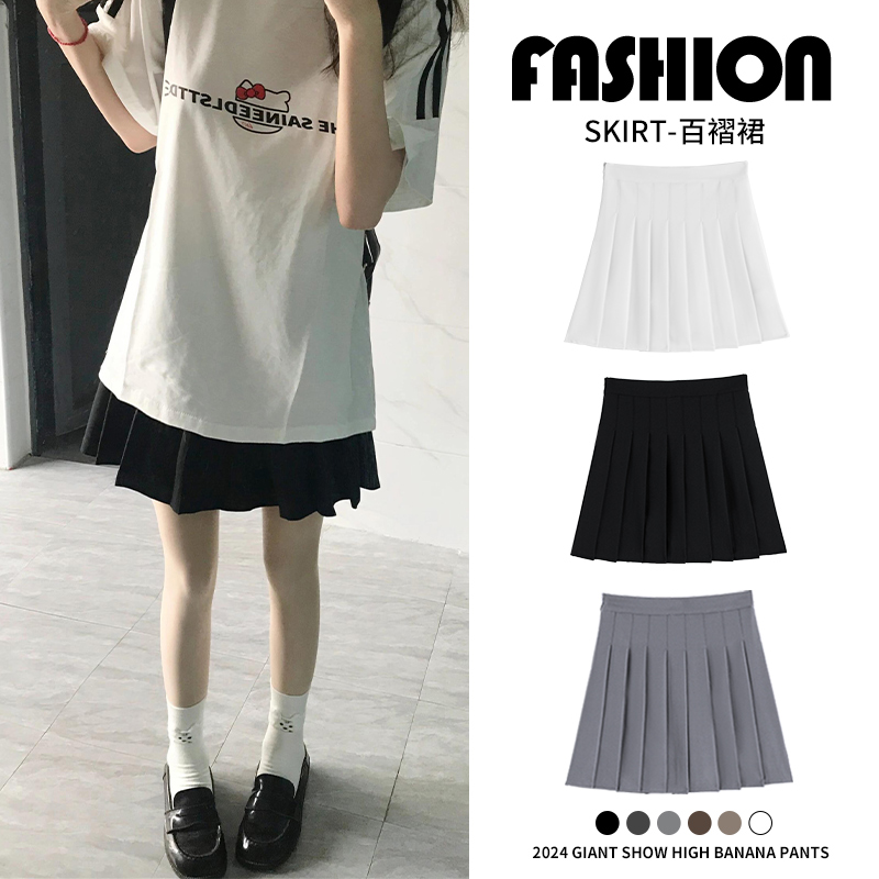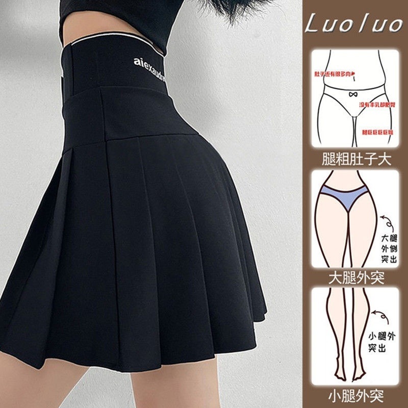 Rok Lipit Warna Hitam Rok Setengah Badan Wanita Rok Pendek Jk Terlihat Langsing Pinggang Tinggi Tubuh Kecil Model Tipis Musim Panas Rok Huruf A Setelan Siswa