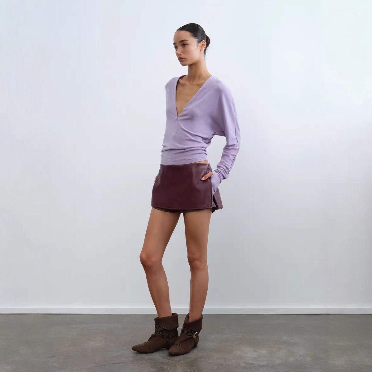 2025新款 侧拉链两穿mini裙裤 亮黑/酒红/棕色