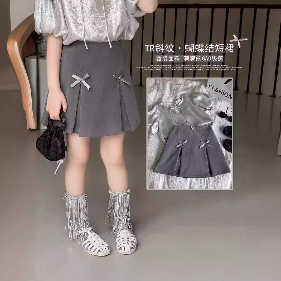 Pakaian Anak-anak Celana Rok Setengah Badan Gaya Sekolah Anak Perempuan Gaya Korea Rok Setelan Model Baru Musim Semi Musim Panas 2024 Rok Huruf A Simpul Kupu-Kupu Anak-anak 8