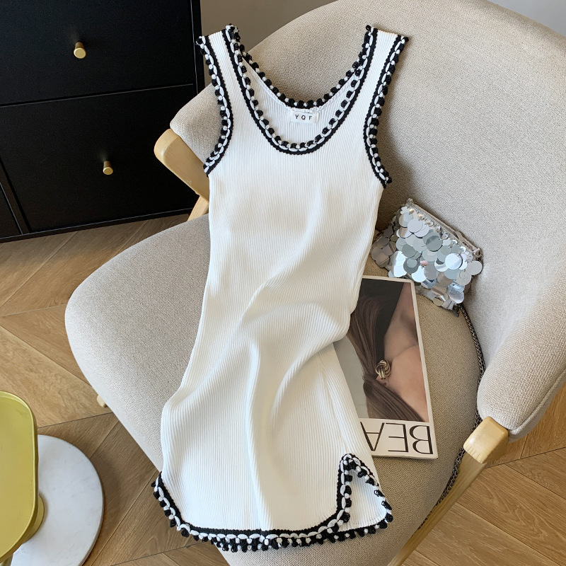 Pakaian Wanita Tempat Foto asli Rok Pendek Gaya Korea Model Baru Musim Panas Rok Rompi Tanpa Lengan Warna Kontras Rok Tank-top Rok Rajut Anak-anak