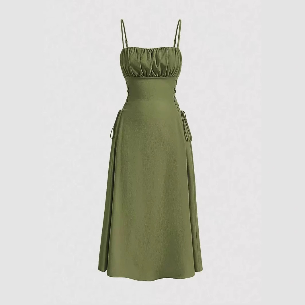 Musim Panas 2025 Musim Panas Baru Lintas Batas Perdagangan Luar Negeri Stasiun Independen Penjualan Panas Gaun Tali Tali Pinggang Ketat Tali Serut Seksi Warna Polos