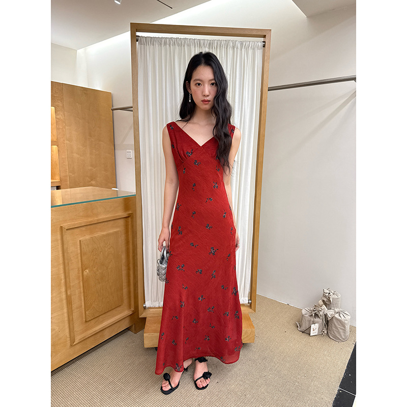 Interpreting Beauty NEWOPEN 25 Gaun Tanpa Lengan Model Slim V-neck Gaya Prancis Musim Panas yang Dewasa dan Elegan S5213