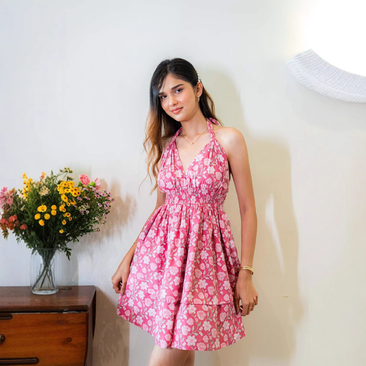 Produk Baru Eropa dan Amerika Cross-Border Model Musim Panas 2025 Gaun Liburan Bohemian Fashion Retro Gaun Gantung Leher Seksi
