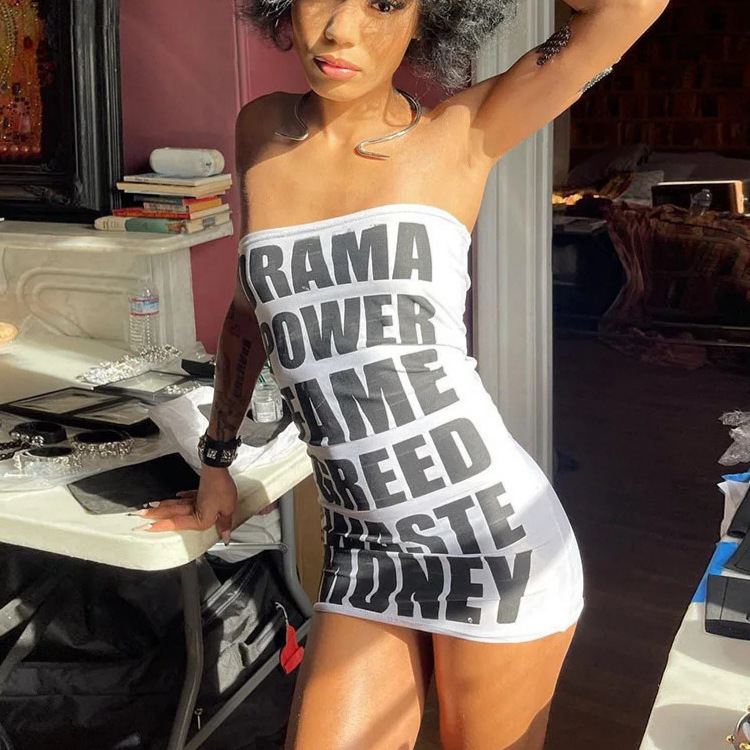 Gaun Terusan Langsing Model Pendek Terlihat Langsing Tanpa Lengan Bermotif Huruf Terlihat Langsing Membentuk Tubuh Gadis Pedas Jalanan Berkarakter Lintas Batas Eropa Amerika