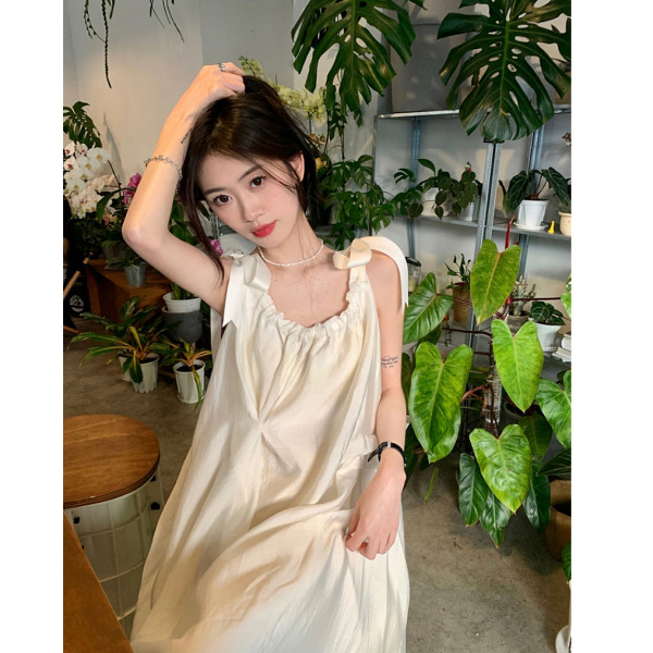 Gaun Suspender Wanita Rok Panjang A-line Di Bawah Lutut Elegan Gaya Desain Premium Mewah Ringan Gaya Perancis Model Baru Musim Panas 2025