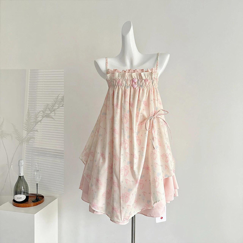 Gaun Suspender Motif Bunga Permen Dopamin Lembut Manis Rok Pendek Liburan Anak Kecil Model Baru Musim Panas Siswa Perempuan
